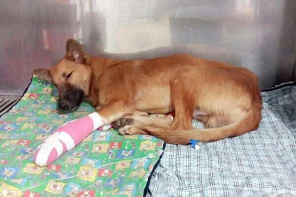 הכלב אחרי הקטיעה ולפני הניתוח // צילום: ווצ'דוג תאילנד וסוי דוג פאונדיישן