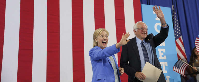אחרי היריבות המרה - מגיע איחוד הכוחות: "באתי להגיד את זה בצורה הכי ברורה שניתן - הילארי קלינטון חייבת להיות הנשיאה הבאה שלנו", אמר ברני סנדרס היום (שלישי) בכנס בחירות בניו המפשייר. סנדרס הביע תמיכה רשמית במועמדת הדמוקרטית לנשיאות ארה"ב הילארי קלינטון, שניצחה בבחירות המקדימות של המפלגה הדמוקרטית.