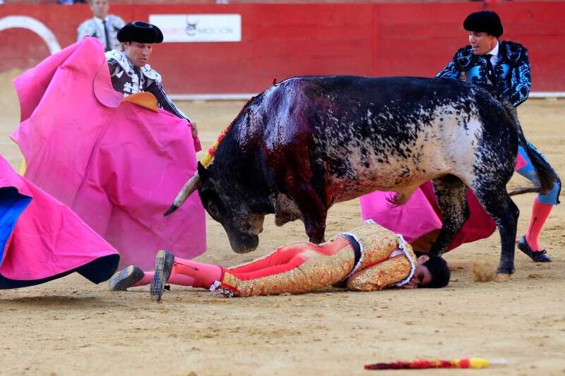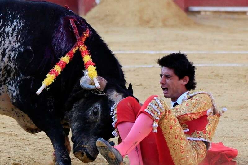 ויקטור בריו מתחמק מהשור לפני הפגיעה // צילום: איי.אפ.פי
