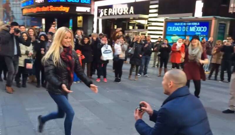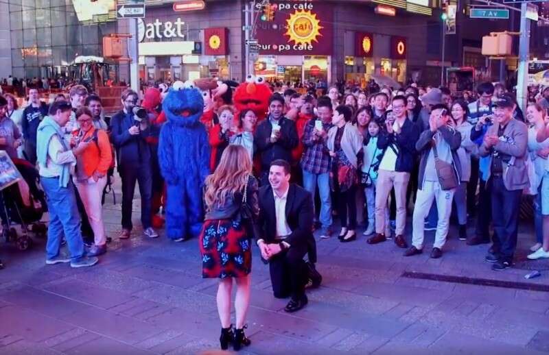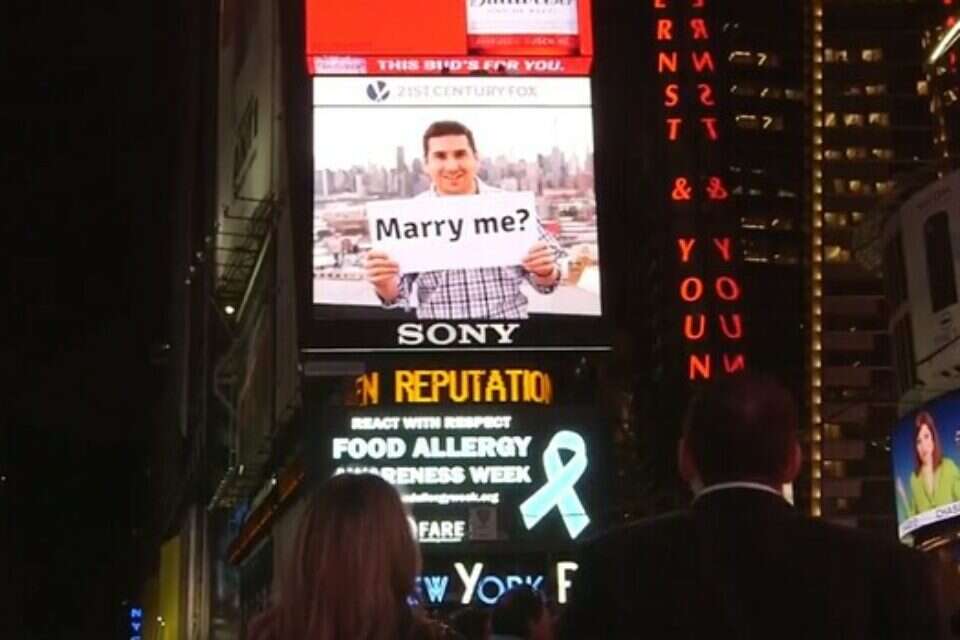 אי.ג'יי (29) ידע שכתושב "התפוח הגדול", גם הצעת הנישואין שלו לחברתו ניקול (29) חייבת להיעשות "בגדול". ואכן אי.ג'יי עשה זאת הכי בגדול שאפשר: הוא הקרין את הצעת הנישואין שלו על גבי אחד משלטי החוצות האלקטרוניים המוצבים בטיימס סקוור. ניקול המופתעת אשר הובאה למקום בשלל אמתלות שתוכננו מראש, ענתה כמובן בחיוב.