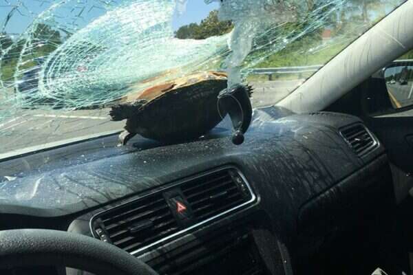 מה עומד מאחורי האירוע החריג והביזארי הזה בארה"ב? אישה מפלורידה הייתה בהלם לאחר שצב מעופף התרסק לתוך השמשה הקדמית של רכבה. ניקול מארי נסעה במהירות 120 קמ"ש בשבוע שעבר, כאשר לפתע הזוחל המעופף ניפץ את חלונה הקדמי, ונחת על ה"דשבורד" במכוניתה.