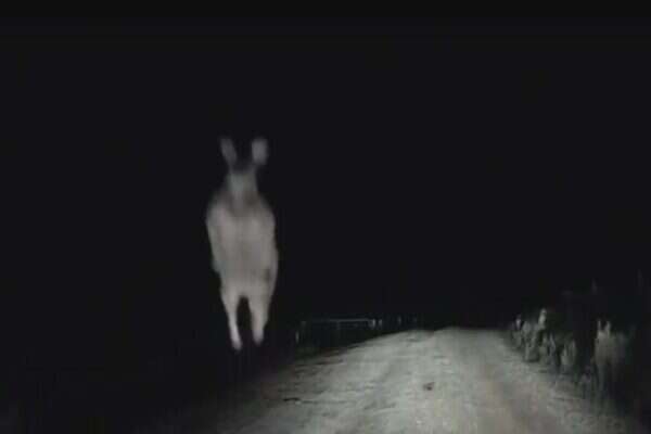 מצלמת הרכב בו נהג תיעדה נסיעה שלווה בדרך עפר, כאשר לפתע מבין השיחים מפתיע אותו קנגורו זריז, שמחליט מסיבה כלשהי לתקוף את הרכב ולקפוץ לעברו.