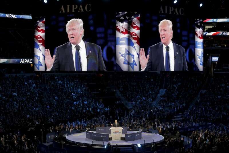 "כשאהיה נשיא", אמר טראמפ בוועידה, "הימים שבהם מתייחסים לישראל כאזרח סוג ב' יסתיימו ביום הראשון. אפגש עם ראש הממשלה נתניהו מיידית. אני מכיר אותו שנים ונוכל לעבוד יחד בצמידות. נעביר את השגרירות האמריקנית לבירה הנצחית של ישראל".