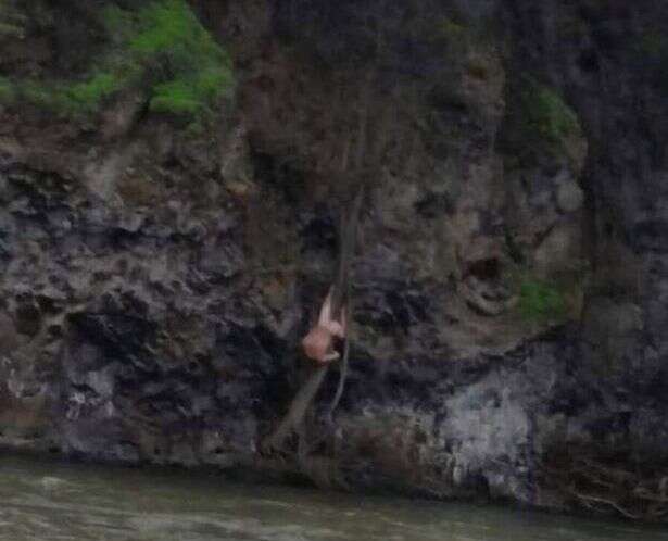 בניסיון להערים על השוטרים ולהתחמק מהם, הפורץ העירום החליט לקפוץ ממצוק בגובה של יותר מ-50 מטרים. במקום להגיע למים ולשחות מהמקום, או לטבוע לצורך העניין, הוא נתפס בעץ.