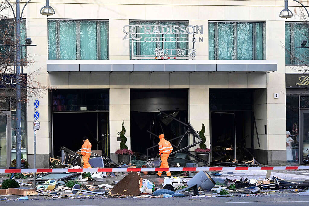 האירוע התרחש במתחם של מלון רדיסון בלו. מתוך המתקן העצום נשפכו יותר ממיליון ליטר מים. שני עובדי המלון נפגעו מרסיסי זכוכית. במקום עובדים כ-100 מצילים. רחוב קרל ליבקנכט, שבו נמצא המתחם, נסגר לתנועה "עקב כמויות אדירות של מים".