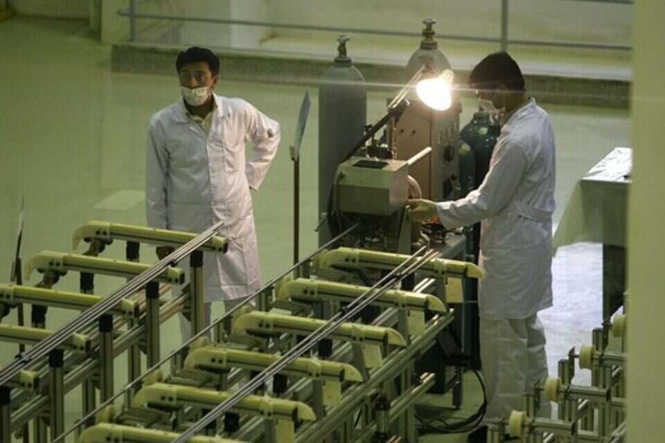 טכנאים איראנים מעשירים אורניום במתקן בפורדו // צילום: אי.פי (ארכיון) // טכנאים איראנים מעשירים אורניום במתקן בפורדו