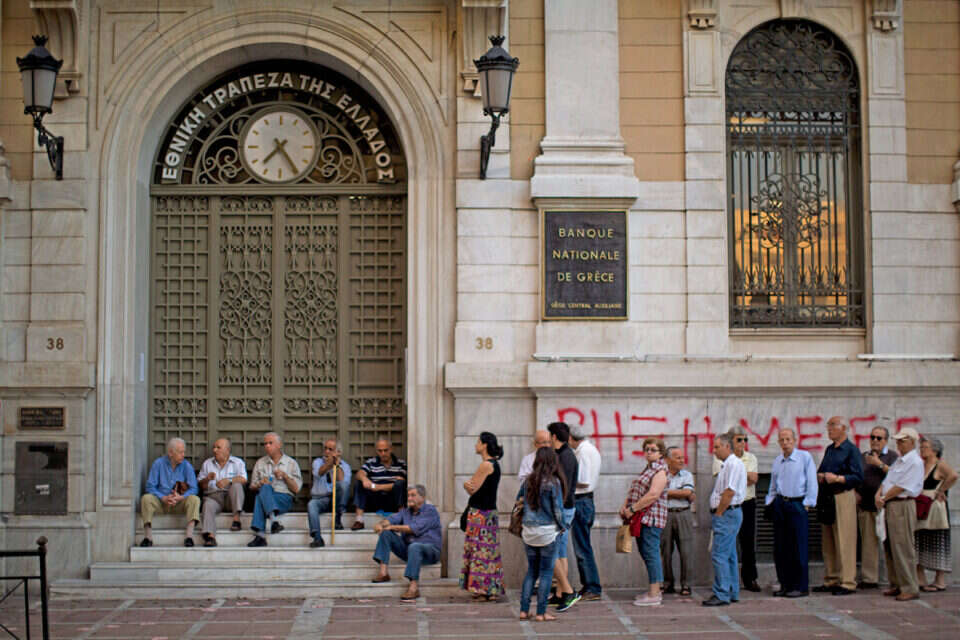 יוונים מודאגים מחוץ לבנקים // צילום: איי.פי // יוונים מודאגים מחוץ לבנקים