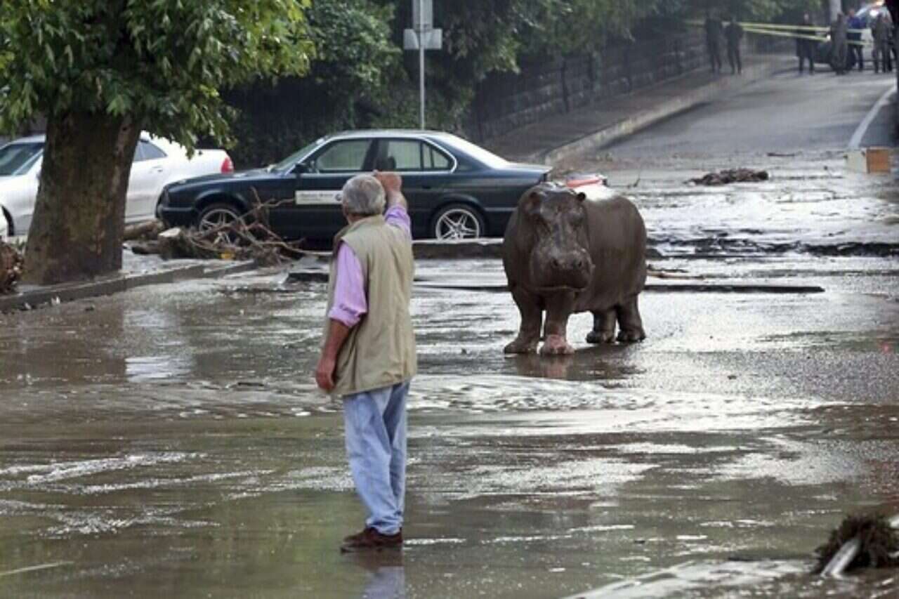 תושבי טביליסי, בירת גאורגיה, סובלים ממזג אוויר קשה ומשטפונות קשים. כעת עליהם להיזהר גם לא להירטב בחוץ וגם לא להיתקל בהיפופוטם ברחוב. אריות, נמרים, דובים, זאבים ואפילו היפופוטם אחד ברחו מגן חיות גדול בעיר, בעקבות השטפונות שפקדו את האזור. התושבים המפוחדים קיבלו הוראה להישאר בבתיהם בשל עשרות החיות הנמלטות שמשוטטות ברחובות העיר.