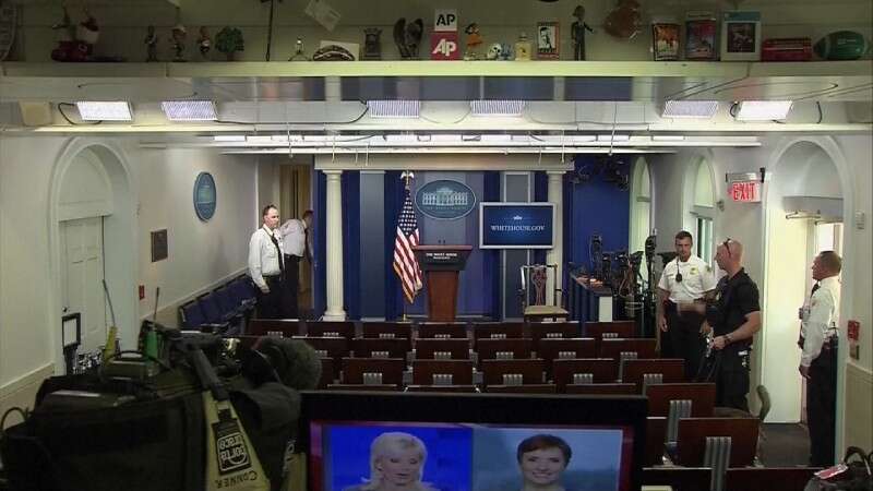 העיתונאים נמלטים מחדר העיתונות בבית הלבן // העיתונאים נמלטים מחדר העיתונות בבית הלבן