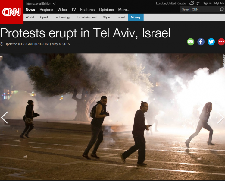 בסי.אן.אן דווח הלילה על "התפרעות מפגינים בתל אביב". על פי הדיווח, "יהודים אתיופים התעמתו עם שוטרים במהלך הפגנה אלימה במחאה על גזענות ואלימות משטרתית. ההפגנות התפרצו בעקבות סרטון, בו נראים שוטרים מכים חייל אתיופי יהודי", כך דווח.