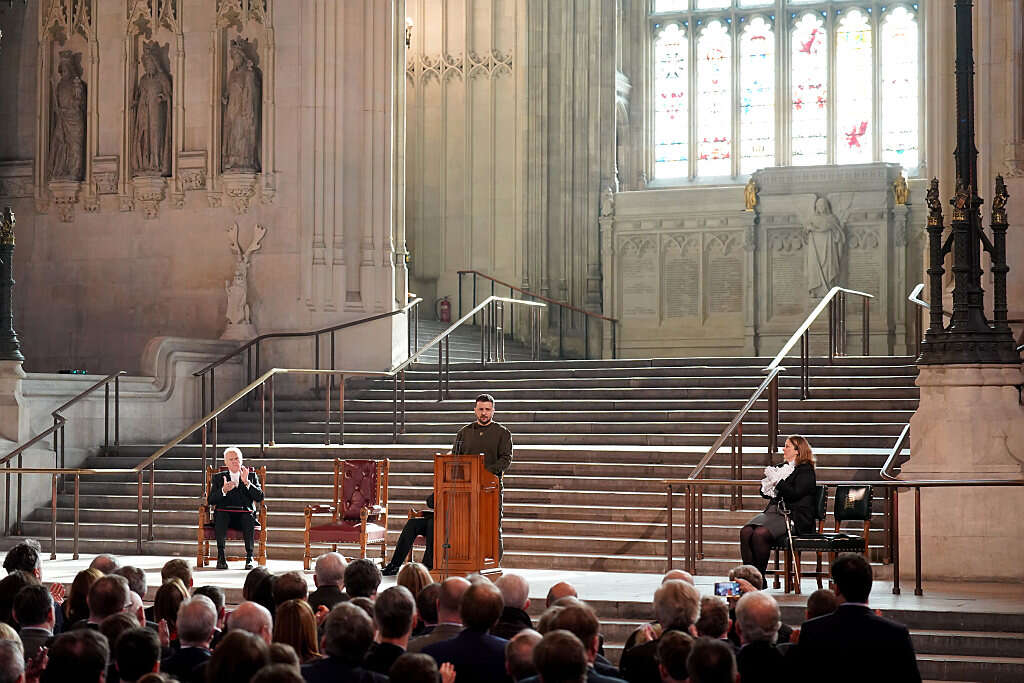בנאום שנשא בפני מאות חברי הפרלמנט הבריטי באולם ווסטמינסטר ההיסטורי בבית הנבחרים בלונדון, הצהיר זלנסקי: "הרשע מתמוטט. אנחנו יודעים שהחופש ינצח. אנחנו יודעים שרוסיה תפסיד ואנחנו יודעים שהניצחון עליה ישנה את העולם. זה שינוי שהעולם זקוק לו מזה זמן רב. זה יהיה ניצחון על רעיון המלחמה. לאחריו, כל תוקף יידע מה מצפה לו אם הוא יפר את החוק הבינלאומי, ימיט מוות והרס על אחרים ויבקש להנציח את הדיקטטורה שלו על חשבון דמם של חפים מפשע".