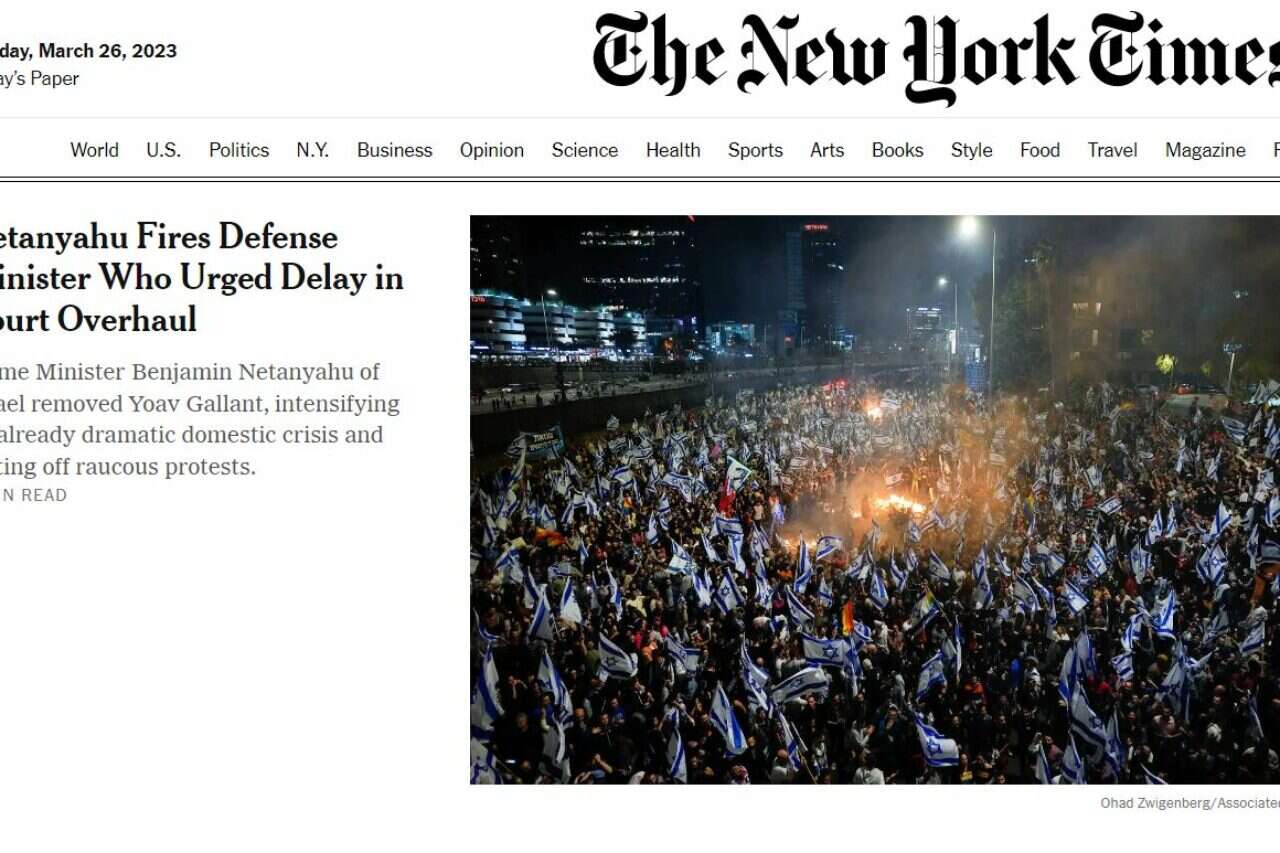 ב"גרדיאן" הבריטי הפכו הפיטורים לכותרת הראשית. "מחאות ענק לאחר הדחת שר שהתנגד לרפורמה המשפטית", נכתב בכותרת, "פיטוריו של יואב גלנט, בכיר במפלגת השלטון הליכוד, מוציאים עשרות אלפים לרחובות תל אביב"