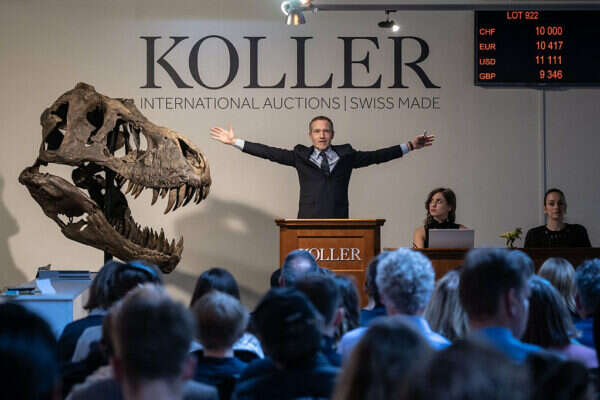 שלד של טירנוזאורוס ענק המכונהTrinity TRX-293 נמכר היום (שלישי) בשווייץ בסכום מטאורי של 6.13 מיליון דולר בתום מכירה פומבית.