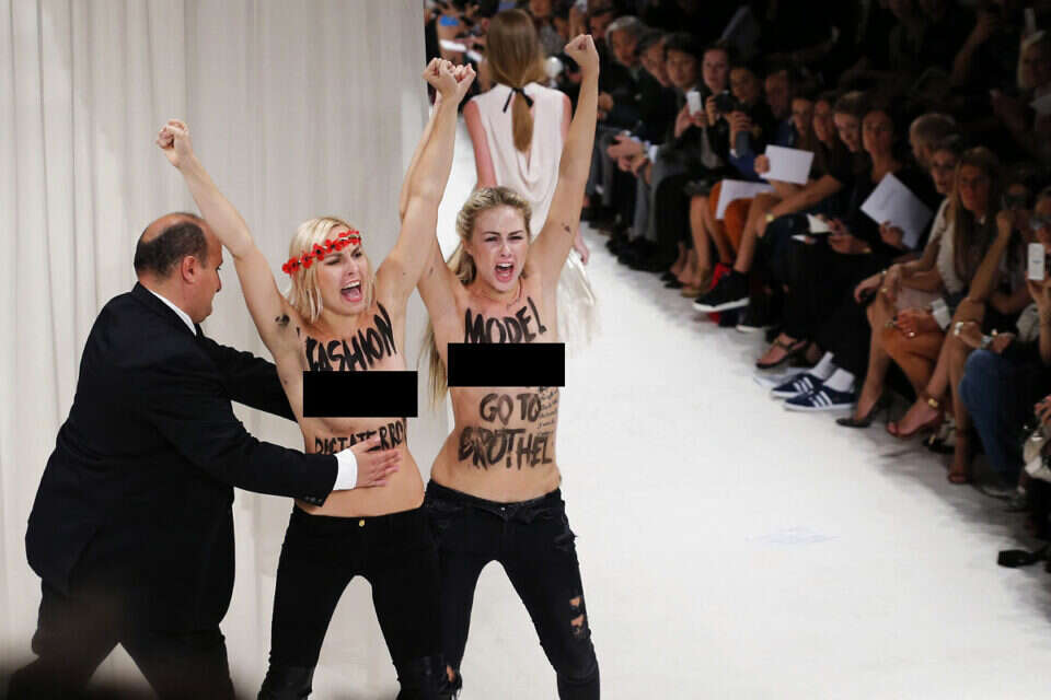 מפגינות חשופות חזה התפרצו לשבוע האופנה