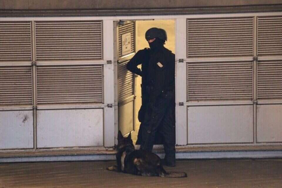 שוטר עם כלב חיפוש באזור הפיגוע בדנמרק // שוטר עם כלב חיפוש באזור הפיגוע בדנמרק
