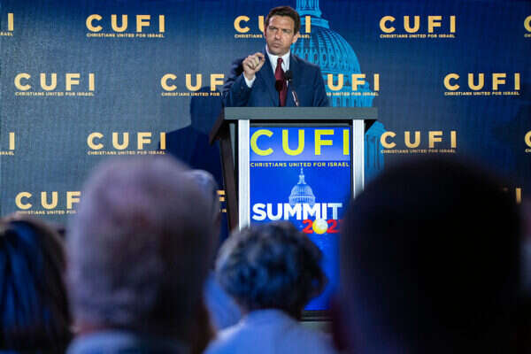 כנשיא, אזרוק הצדה את היחס המזעזע של ממשל ביידן לישראל, כך אמר הערב ל"דיילי מייל" רון דה סנטיס, המתמודד על הכרטיס של המועמד הרפובליקני לנשיאות. בשולי ועידת CUFI (נוצרים מאוחדים למען ישראל), אמר דה סנטיס כי יחדש את היחסים היצוקים מברזל בין ארה"ב לישראל. לדבריו, לא יתערב בענייני הפנימיים של ישראל ומעל לכל יגן "על זכותה להגן עצמה". דה סנטיס מתח ביקורת חריפה על מחוקקים פרוגרסיביים, שהפכו את ישראל שעיר לעזאזל. "ישראל אינה גזענית, כמה מגוחך!", אמר. "מדובר במדינה החופשי והדמוקרטית מכל במזרח התיכון".