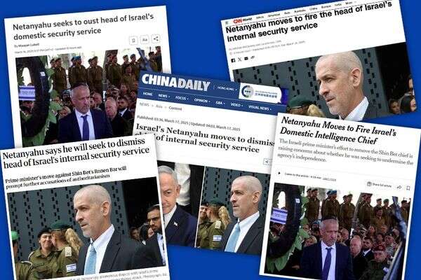 ה-CNN האמריקאי דיווח כי "לאחר חודשים של מתיחות, ראש הממשלה בנימין נתניהו הודיע כי יפעל להדחת ראש שירות הביטחון הכללי, רונן בר". הרשת ציטטה את נתניהו שאמר בהצהרת וידאו כי "חוסר האמון המתמשך" בבר הוביל להחלטה זו. "בכל עת, אך במיוחד במלחמה קיומית כזו, ראש הממשלה חייב לתת אמון מלא בראש השב"כ," אמר נתניהו, והוסיף כי הדחת בר תהיה הכרחית "להשגת יעדי המלחמה בעזה ולמניעת האסון הבא".