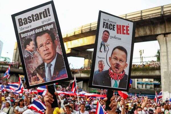 אלפי אנשים הפגינו היום (שבת) במרכז בנגקוק נגד ראש ממשלת תאילנד פאטונגטרן צ'ינוואט, על רקע המתיחות מול קמבודיה ודליפת הקלטת שיחה שערכה עם פוליטיקאי קמבודי בכיר – שיחה שנתפסה כהתרפסות בפניו ובמהלכה אף מתחה ביקורת על הפיקוד הבכיר של צבאה.