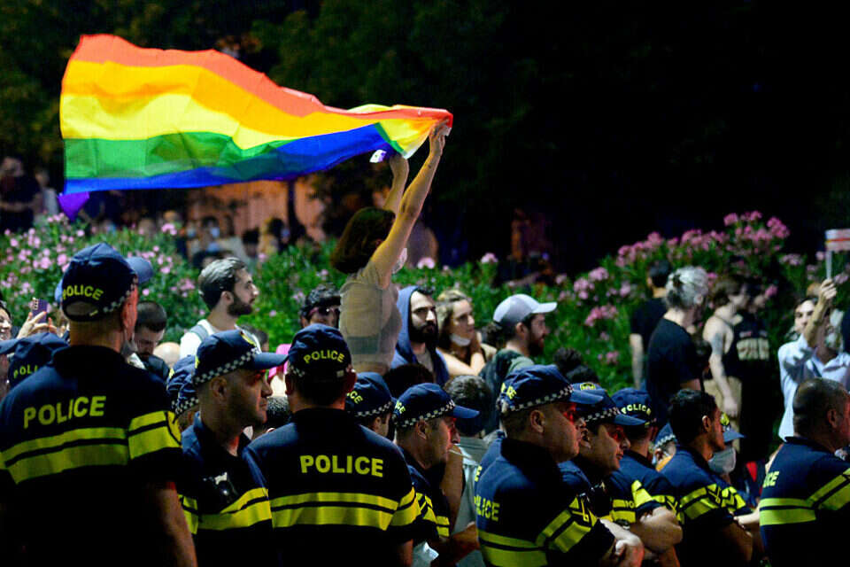 מאות מפגינים התקבצו אתמול (ראשון) סמוך לבניין הפרלמנט ומשרדי מפלגת השלטון במחאה על האלימות שהופנתה כלפי חברי הקהילה הגאה בגיאורגיה, לקראת מצעד הגאווה שאמור היה להיערך בבירה ביום שני בשבוע שעבר ובוטל.
