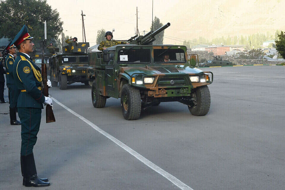 תהלוכת הצבא הטג'יקי בגבול עם אפגניסטן, ספטמבר 2021 // צילום: סוכנויות הידיעות