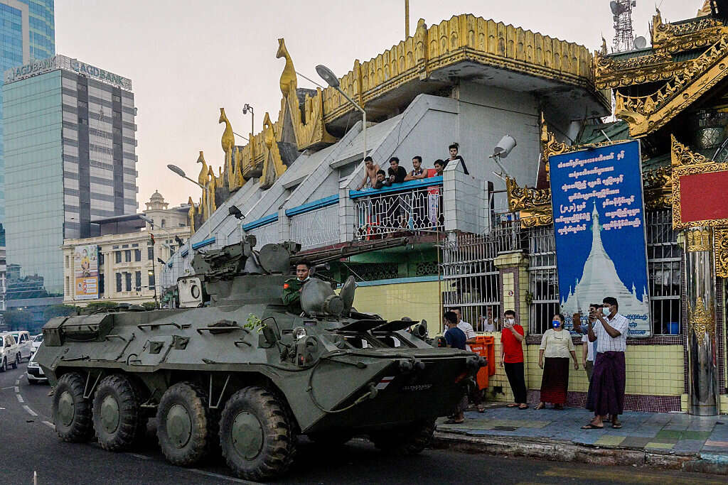 נגמ"שים וכלי רכב משוריינים נצפו ברחובותיה ראשיים והכיכרות של ינגון ואלפי חיילים החלו להתפזר בנקודות מרכזיות. המפגינים, הדוגלים במחאה לא אלימה, נושאים שלטים וקוראים סיסמאות בגנות ראשי החונטה הצבאית. אנשי הצבא הודיעו על סגר ועל הפלת רשת החשמל בעיר החל מאחת בלילה, לפי השעון המקומי.