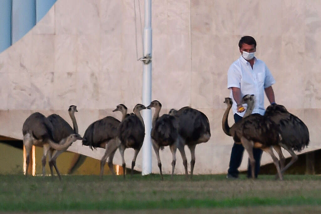 הנשיא חולה הקורונה היה מעורב בתקרית לא נעימה עם ציפור אוסטרלית עצומה מסוג רהיה, שנשכה אותו בידו • בולסונארו נחבל קלות, לא נמסרה תגובה מהציפור