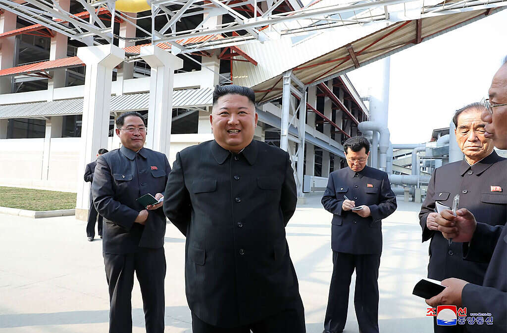 בתמונות שפורסמו, נראה המנהיג לצד אחותו קים יום ג'ונג, עליה דווח אף כי היא אחת המועמדות להחליפו, אם אכן מת. כאשר השניים השתתפו בטקס גזירת הסרט של המפעל בעיר סוצ'ון בדרום מרכז מחוז פיונגן במדינה. בדיווח הרשמי של סוכנות הידיעות הרשמית, שאמינותה מוטלת בספק כל עוד לא אומתה על ידי גורמים נוספים, נטען כי קים "הביע שביעות רצון מהעבודה במפעל" וכי "המשתתפים פרצו בתשואות רמות למנהיג העליון".