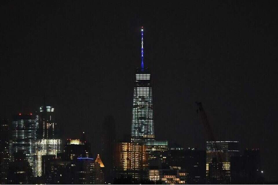 בניין הסחר העולמי מואר בצבעי דגל ישראל // צילום: לשכת מושל מדינת ניו יורק