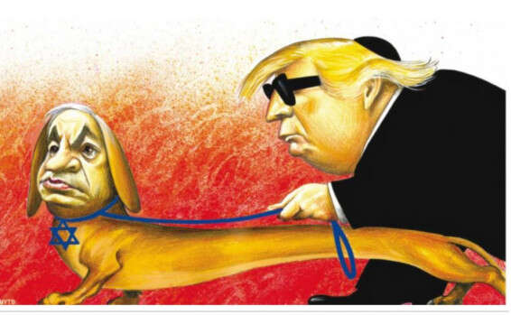 "זה איור שבעידן אחר היה יכול להופיע מעל דפיו של דר שטירמר. יהודי בדמות כלב, קטן אך תככן, שמוביל אמריקני מטומטם שנותן בו אמון. טראמפ השנוא עבר גיור כשצויר עם כיפה לראשו. המשרת הנאמן לכאורה, שלמעשה הוא האדון האמיתי. הקריקטורה הזו עונה לשורה כה ארוכה של מאפיינים אנטישמיים, עד שהדבר היחיד שחסר לה הוא סימן של דולר. יש דרכים לגיטימיות למתוח ביקורת על מדיניותו של הנשיא כלפי ישראל, באיורים ובמלים. אבל אין שום דבר לגיטימי בקריקטורה הזו.