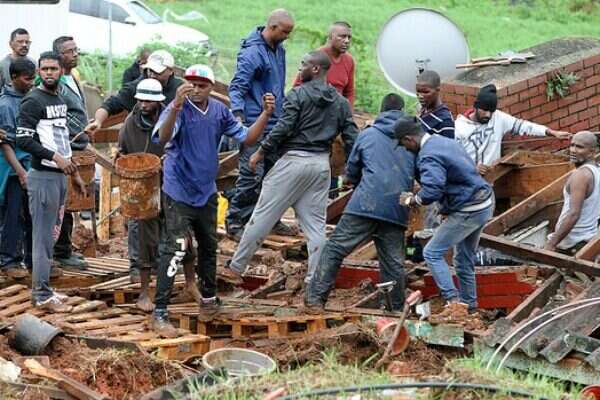 צוותי החילוץ וההצלה חופרים באזור החוף במחוז קוואזולו-נטאל, שבו עומד היום (רביעי) מספר ההרוגים על 51, לפי גורמים מקומיים.