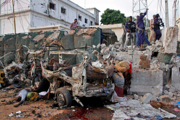 הקבוצה המיליטנטית-איסלאמיסטית אל-שבאב, המקורבת לארגון אל-קאעידה, לקחה אחריות על הפיגועים בבית המלון, שנמצא בקירוב לבניין משרדי חקירות קרימינליות של סומליה.