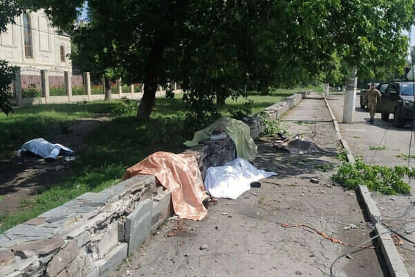 אוקראינה: שמונה אזרחים נהרגו וארבעה נפצעו בהפגזה רוסית על העיירה טורצק במחוז דונצק במזרח המדינה, כך דיווח היום (חמישי) מושל מחוז דונצק, פבלו קירילנקו. תמונות שהופצו ברשת חושפים את האופי המזעזע והפושע של ההפגזה, שפגעה בתחנת אוטובוס, בניין מגורים ובגן שעשועים סמוך.