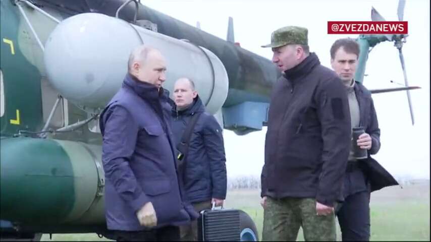 בסרטונים שהופצו בכלי התקשורת ברוסיה נראה פוטין כשהוא יורד ממסוק צבאי ונפגש עם מפקדים. אתרים של מודיעין ממקור פתוח זיהו את מקום הנחיתה של פוטין כמנחת מסוקים צבאי בהניצ'סק, בדרום מזרח מחוז חרסון, סמוך לגבול חצי האי קרים.