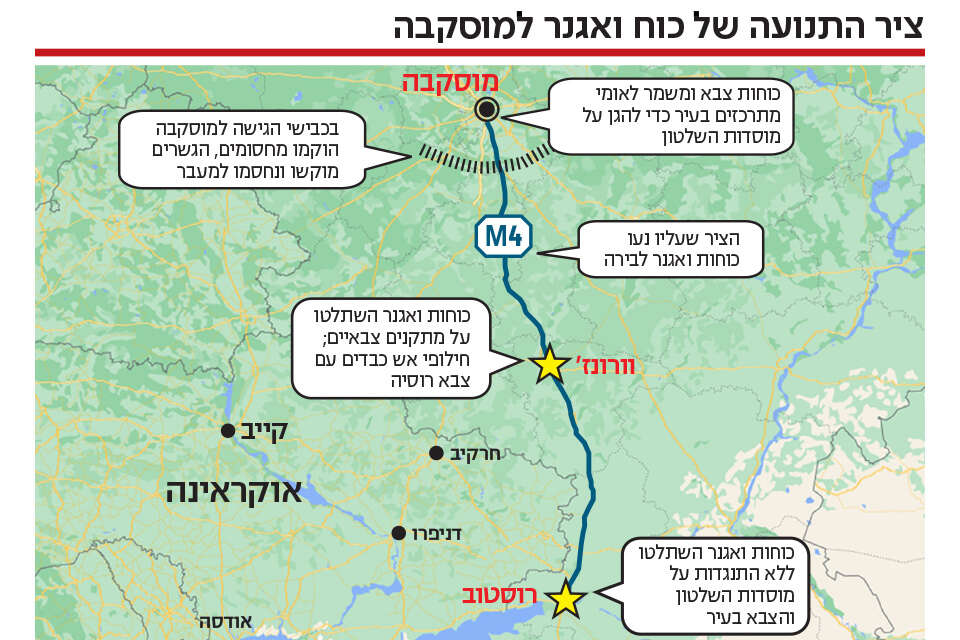 בתוך פחות מיממה השתלטו אנשי ואגנר על שתי בירות מחוז והתקרבו לשתי אחרות, כשכוחותיהם נתקלים בהתנגדות משמעותית רק בדרך למוסקבה. למרות ההתקפות האוויריות על שיירות המורדים, הנעות באוטוסטרדה המובילה מהעיר רוסטוב למוסקבה, בתוך שעות נצפו כוחות ואגנר במרחק של פחות משלוש שעות נסיעה מהבירה. אם המלחמה חשפה את חולשתה הצבאית של רוסיה, המרד של ואגנר חשף את הסדקים העמוקים ביכולת השלטון להפעיל את סמכותו בשטחי רוסיה עצמה. גם איומי פוטין לא הועילו.
