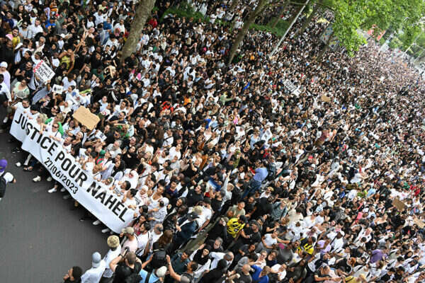 אלפים צעדו בפרוור של פריז בקריאה "צדק לנאאל". הם נענו לקריאת אמו של הצעיר בן ה-17, שנהרג שלשום מירי שוטר לאחר שסירב לציית במהלך ביקורת ניירות. אמו של הצעיר הלכה בראש צעדת הזיכרון לכיוון מפקדת המשטרה בנאנטר.