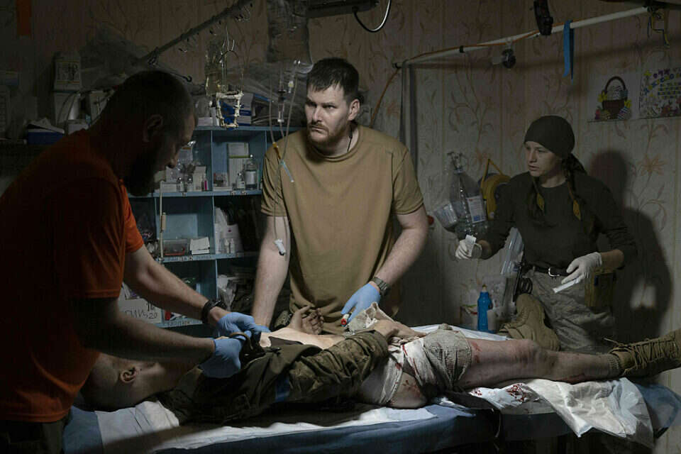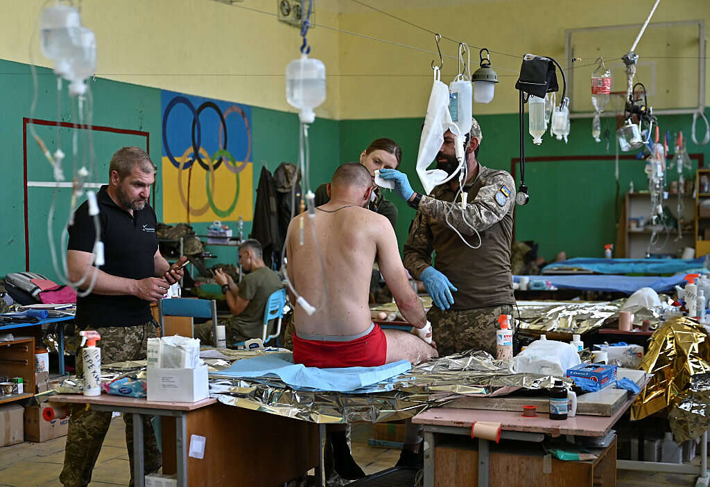 טיפול בפצוע אוקראיני בנקודת ייצוב ליד בחמוט, יולי השנה. צילום: אי.אף.פי