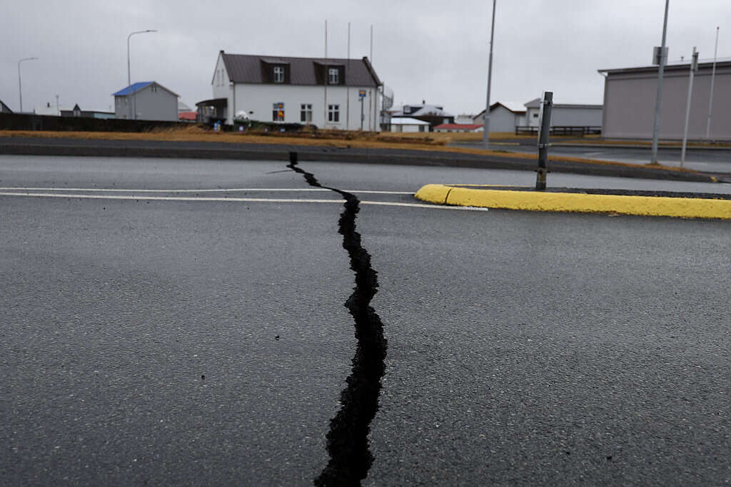 התושבים פונו במהלך סוף השבוע לאחר שאלפי רעידות אדמה קטנות פקדו את האזור . רק ביממה האחרונה נרשמו כ-500 רעידות בסביבות העיירה, הנמצאת בסמוך לבירת המדינה רייקיאוויק. התושבים שהגיעו לעיירה היום מצאו את הכבישים מחורצים והרבה בתים שניזוקו כתוצאה מהרעידות.