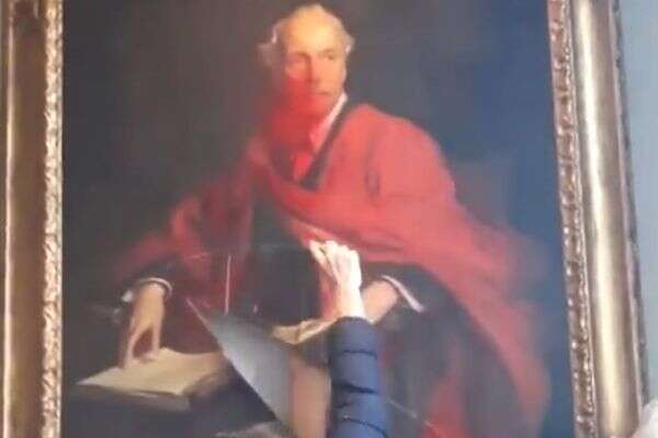 מחאה הרסנית: מפגינים פרו פלשתינים השתוללו באוניברסיטת קיימברידג' בבריטניה וקרעו דיוקן היסטורי של הלורד ארתור ג'יימס בלפור, מדינאי יליד המאה ה-19 ששמו נקשר בהיסטוריה הציונית.