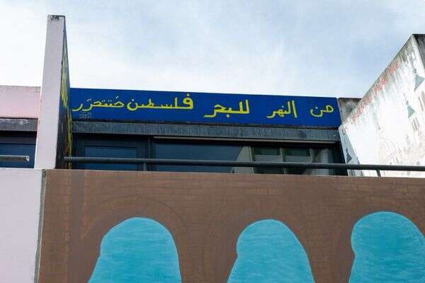 הכתובת על הקיר: כתובת המתנוססת על קורת גג, "מהים עד הנהר, פלשתין תשוחרר", התגלתה בקונולי שטראסה, הרחוב שבו שהתה המשלחת הישראלית באולימפיאדת מינכן בשנת 1972.