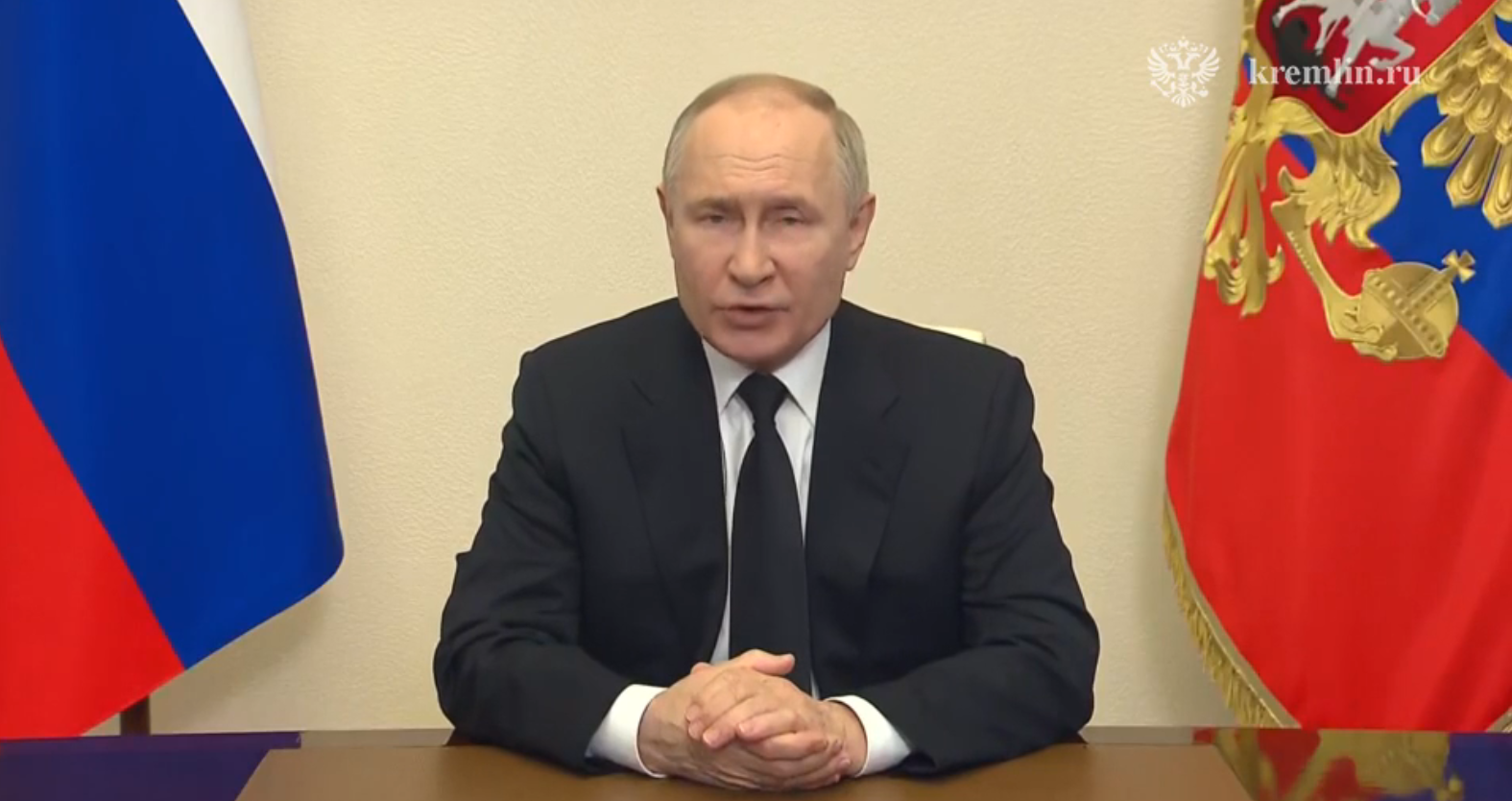 16 שעות לאחר הטבח באולם הקונצרטים במוסקבה, שבו נרצחו לפחות 150 בני אדם, פרסם הקרמלין הודעה מוקלטת של ולדימיר פוטין.