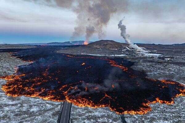 הר הגעש בדרום-מערב איסלנד התפרץ שוב אתמול (שלישי) בבוקר, כשהוא פולט לבה ועשן לאוויר – רק שעות ספורות לאחר שהרשויות פינו את התושבים האחרונים שנותרו בכפר הדייגים הסמוך גרינדאוויק.