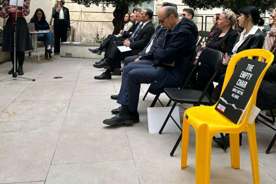 בטקסי הזיכרון לשואה ולגבורה שנערכו בפריז, בנוכחות שגריר ישראל בצרפת יהושע זרקא, בלטו כיסאות צהובים – סמל לחטופים שעדיין מוחזקים בידי חמאס מאז ה-7 באוקטובר. מדובר ביוזמה של כתר, המתקיימת זו השנה השנייה בטקסי זכרון בעולם, כאקט של הזדהות והעלאת המודעות להשבת החטופים במרחב הציבורי.