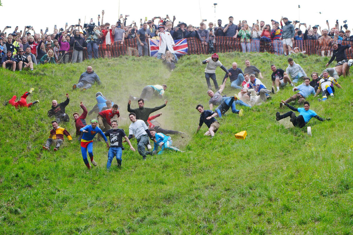 פסטיבל מירוץ הגבינה המסורתי של גבעת קופר'ס באנגליה התקיים היום (שני) ליד העיר גלוסטר. כמו בכל שנה, הגיעו משתתפים מכל העולם כדי להיות חלק מהאירוע: מרדף אחר גלגל גבינה במורד גבעה תלולה במיוחד, במה שמסתיים לרוב בהתגלגלות חסרת שליטה. הפרס: גלגל גבינה.