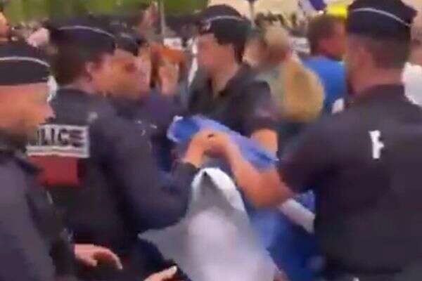 משטרת צרפת הרסה אתמול (ראשון) שלט שעליו נכתב "שחררו את בני הערובה" בטור דה פראנס, כך על פי סרטון שהופץ ברשתות החברתיות. בתיעוד ניתן לראות כיצד חמישה שוטרים ממשטרת פריז ממהרים לחטוף את השלט הארוך מידי קבוצת תומכי ישראל שהגיעה למקטע הסיום של המירוץ, מקפלים את השלט וממהרים לעזוב את המקום.
