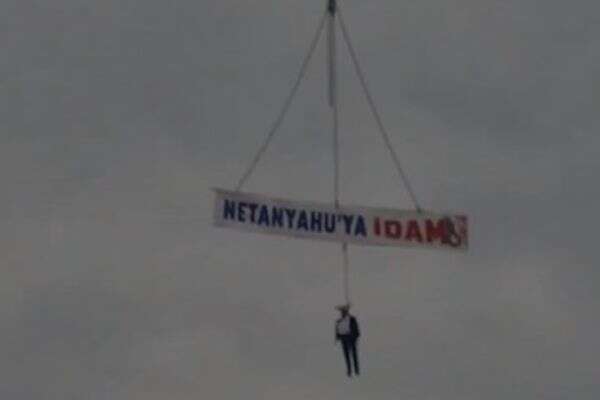 בובה שמייצגת את דמותו של רה״מ בנימין נתניהו נתלתה אתמול (שישי) על מנוף בעיר טרבזון שבמזרח טורקיה, לחופי הים השחור, כשמעליה השלט ״ההוצאה להורג של בנימין נתניהו״, כך עולה מתיעוד שנפוץ בתקשורת הטורקית וברשתות החברתיות.
