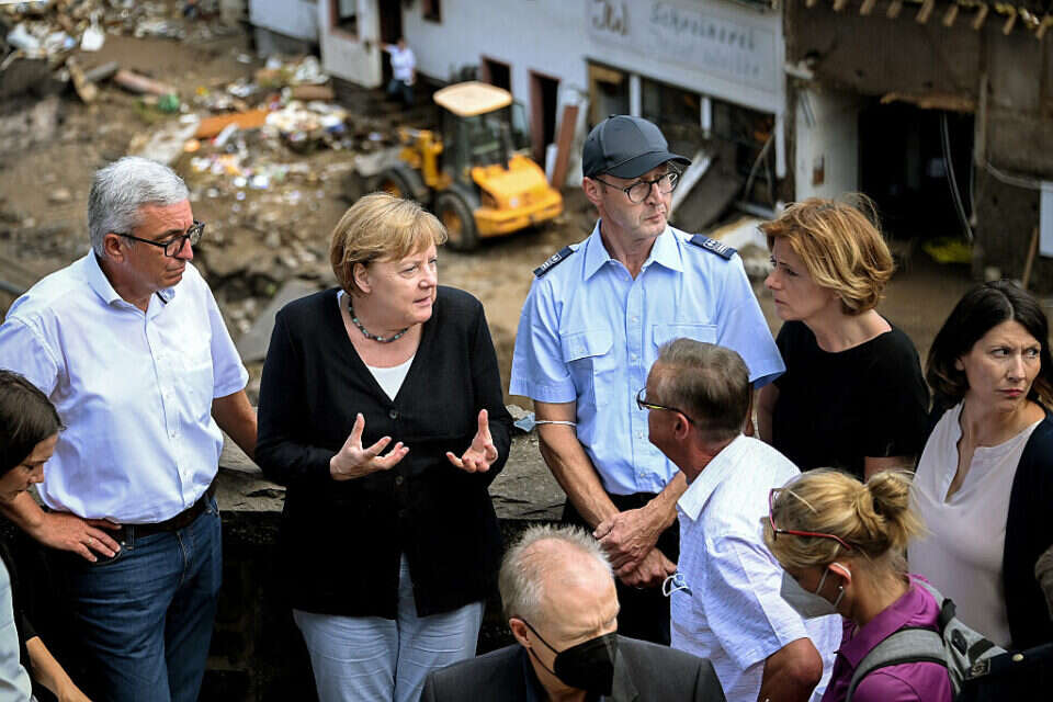 בד בבד, מרקל התייחסה גם להתחממות הגלובלית ואמרה כי "סיכום האירועים שאנו חוזים בהם בגרמניה והעוצמה שבהם הם מתרחשים מראים מעידים על כך שזה חייב להיות משהו שנוגע לשינויי האקלים. עלינו להזדרז במאבק נגד שינוי האקלים".