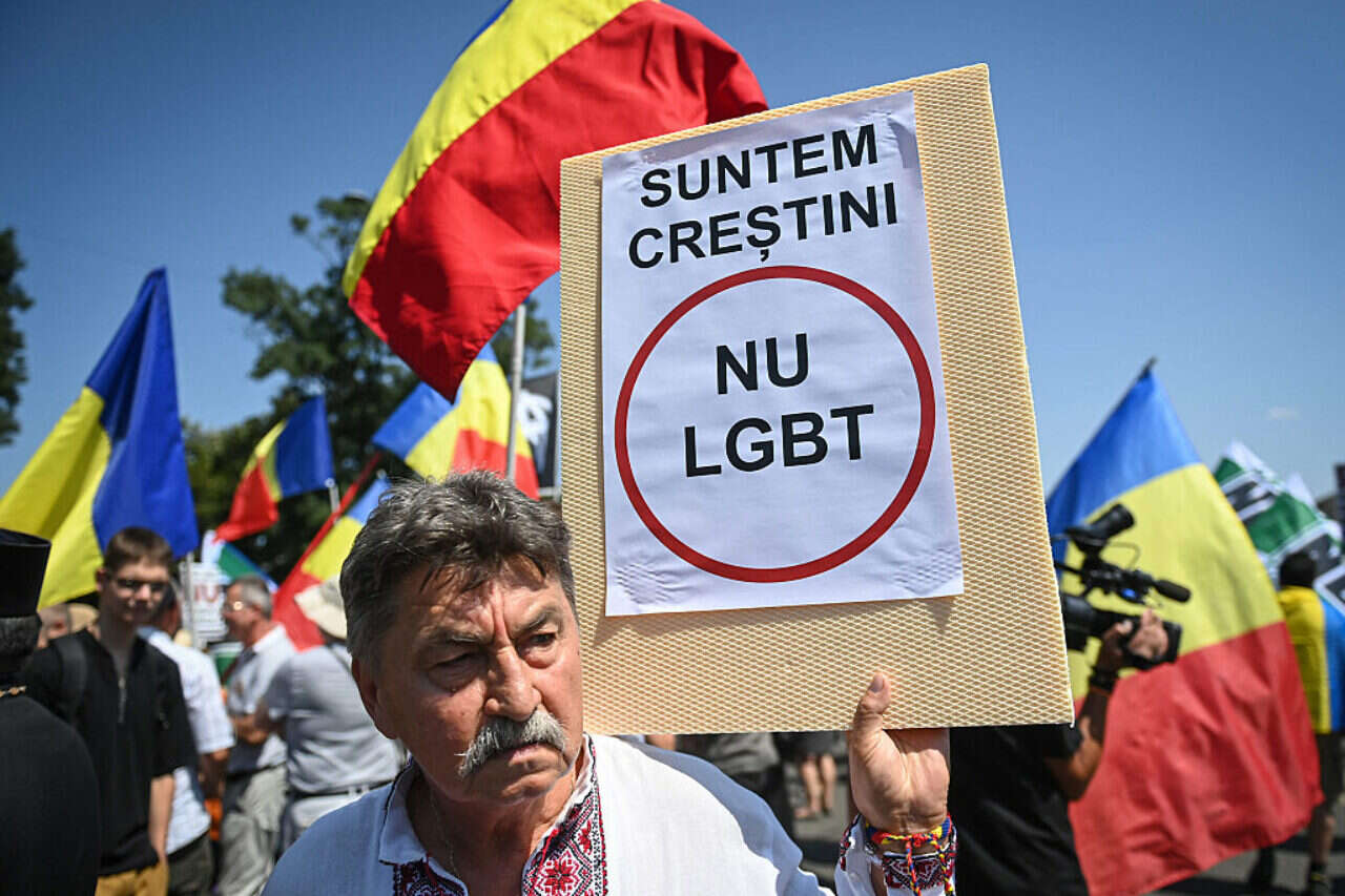 מחאה נגד להט"בים בבוקרשט , צילום: אי.אף.פי