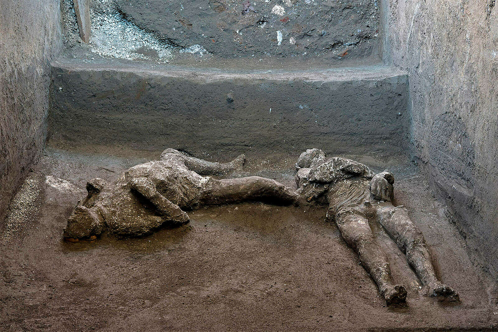 בתמונות החדשות נראים חלקי גולגולת ועצמות של שני גברים, שהיו כנראה איש עשיר ועבדו. השניים מתו במהלך מנוסתם מהאימה של הר וזוב.