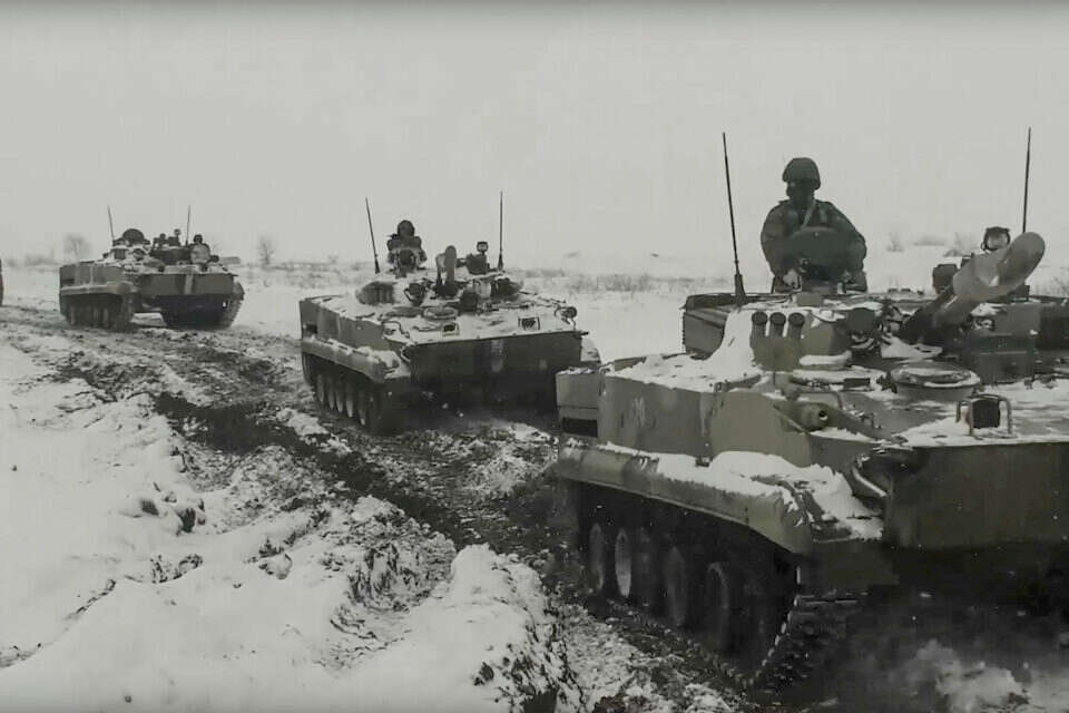 טנקים רוסיים בדרכם לגבול האוקראיני, בחודש אוקטובר // צילום: רויטרס