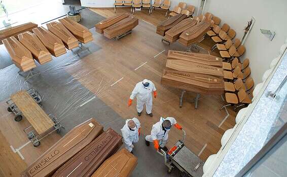 ארונות מתים מקורונה בעיר טורינו באיטליה // צילום: איי.פי // ארונות מתים מקורונה בעיר טורינו באיטליה // צילום: איי.פי